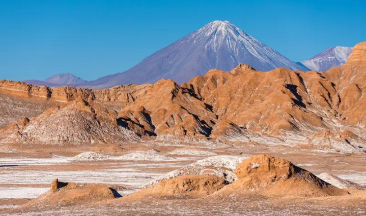 智利北部的阿塔卡马沙漠,满是红沙且没有植被,地表未经过水流侵蚀,站在其中仿佛置身火星。这片“火星基地”藏着更多惊喜——白雪皑皑的火山、蓝得透亮的咸水湖、彩虹谷里矿石映出绿蓝粉黄的色彩,月亮谷的盐柱像异星景观,死亡谷连一丝生机都没有,每走一小时就能遇到不同的奇异美景,荒凉又壮丽。